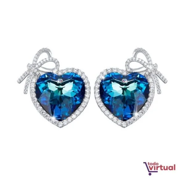Hermosos y elegantes aretes de plata, combinados con cristales finamente tallados y con un especial y cálido diseño de lazo que muestra un elegante estilo.